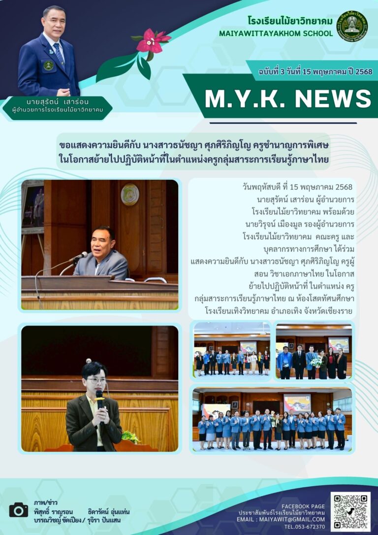 ผู้อำนวยการโรงเรียนไม้ยาวิทยาคม มอบเกียรติบัตร ให้กับนักเรียน และครูผู้ฝึกสอน ที่ได้รับรางวัล เหรียญเงิน การประกวดสวดมนต์หมู่สรรเสริญพระรัตนตรัย ทำนองสรภัญญะ