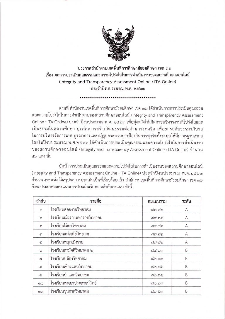 ผลการประเมินคุณธรรมความโปร่งใส ในการดำเนินงานของสถานศึกษา ออนไลน์
