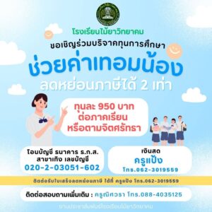 ขอเชิญร่วมบริจากทุนการศึกษา ช่วยค่าเทอมน้อง