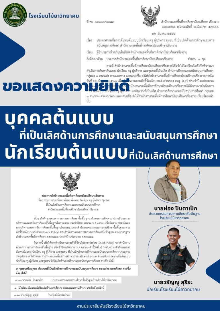 ขอแสดงความยินดี กับ ต้นแบบนักเรียน ครู ผู้บริหาร ชุมชน ที่เป็นเลิศด้านการศึกษา และสนับสนุนการศึกษา สำนักงานเขตพื้นที่การศึกษามัธยมศึกษา