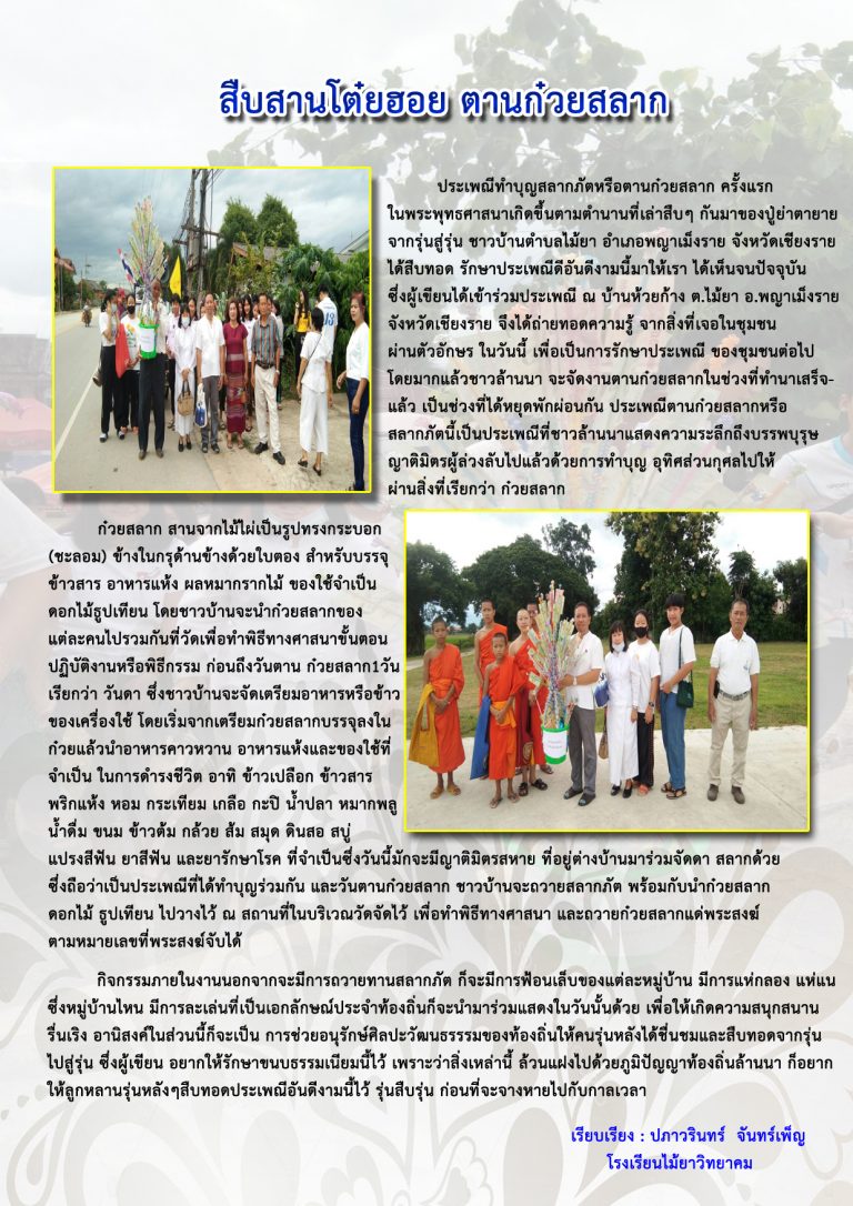 บทความเรื่อง สืบสานโต๋ยฮอย ตานก๋วยสลาก