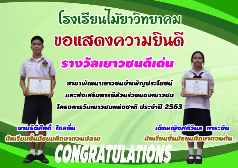 รางวัลเยาวชนดีเด่น ประจำปีการศึกษา2563